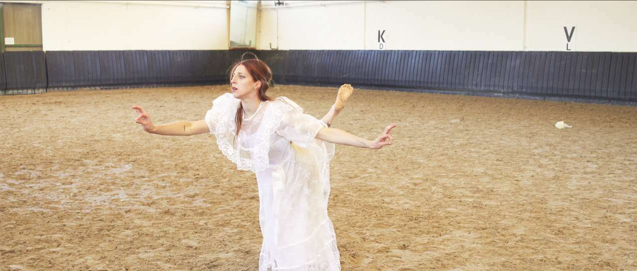 Eine Frau in einem Hochzeitskleid findet sich auf der Bühne wieder. In ihrer Intimität gestört, stellt sie sich die Frage, ob sie ihr eigenes Schicksal heiraten kann. »Alezan« thematisiert die Positionierung eines Menschen gegenüber der Ehe angesichts der gesellschaftlichen Normen.