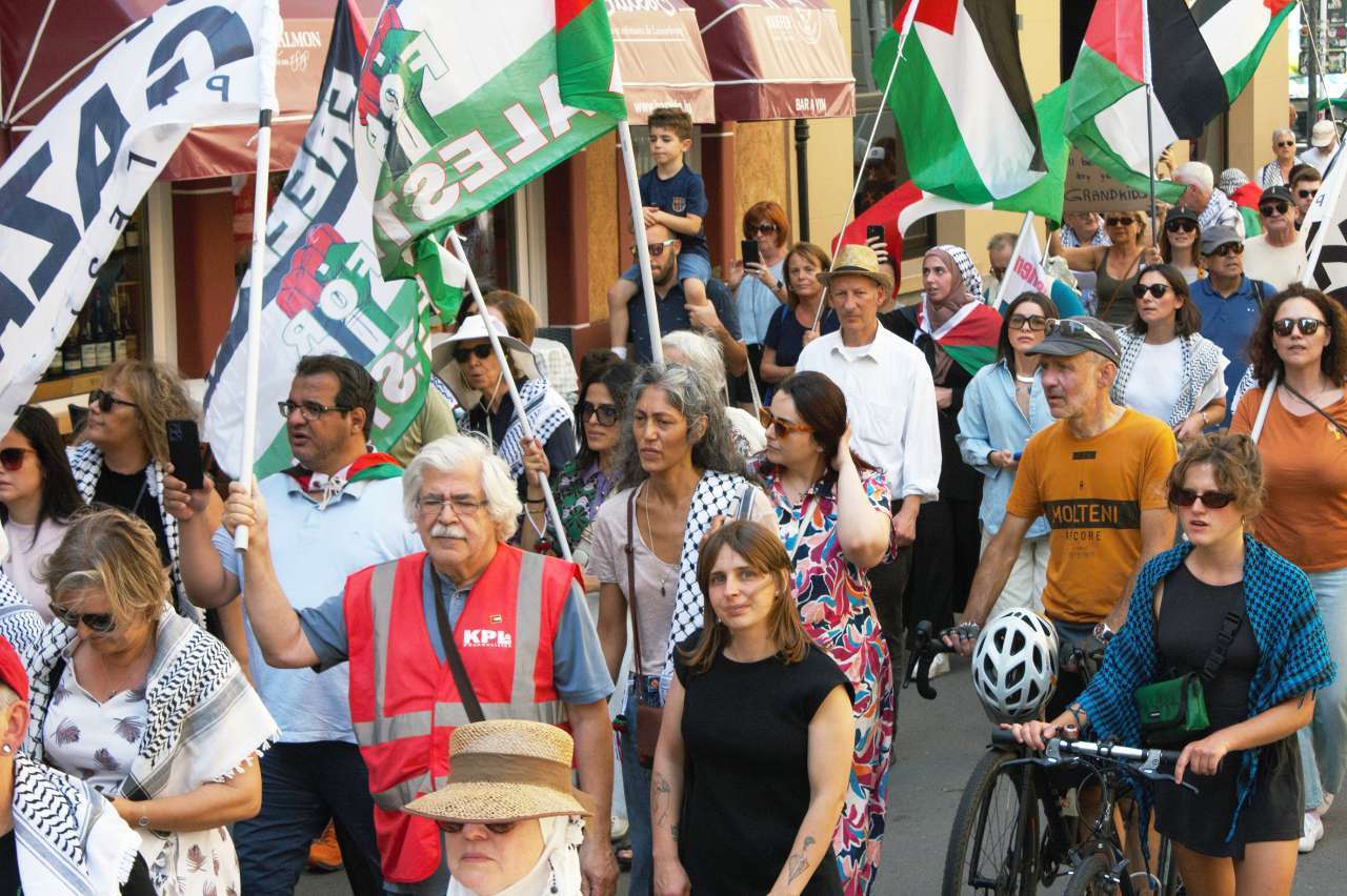 Das Besondere an der Demonstration, die von den Palästina-Kollektiven organisiert wurde und im Wochentakt stattfindet, war, dass im Rahmen der Solidaritätsbewegung »Global Movement to Gaza« bereits zur Mittagszeit in Esch/Alzette eine kleine Fahrradkolonne in Richtung Luxemburg gestartet war, welche rechtzeitig zu Beginn der Demonstration auf der »Kinnegswiss« anlangte, wo die Radfahrer, die palästinensische Fahnen an ihren Fahrrändern angebracht hatten, mit viel Applaus begrüßt wurden.