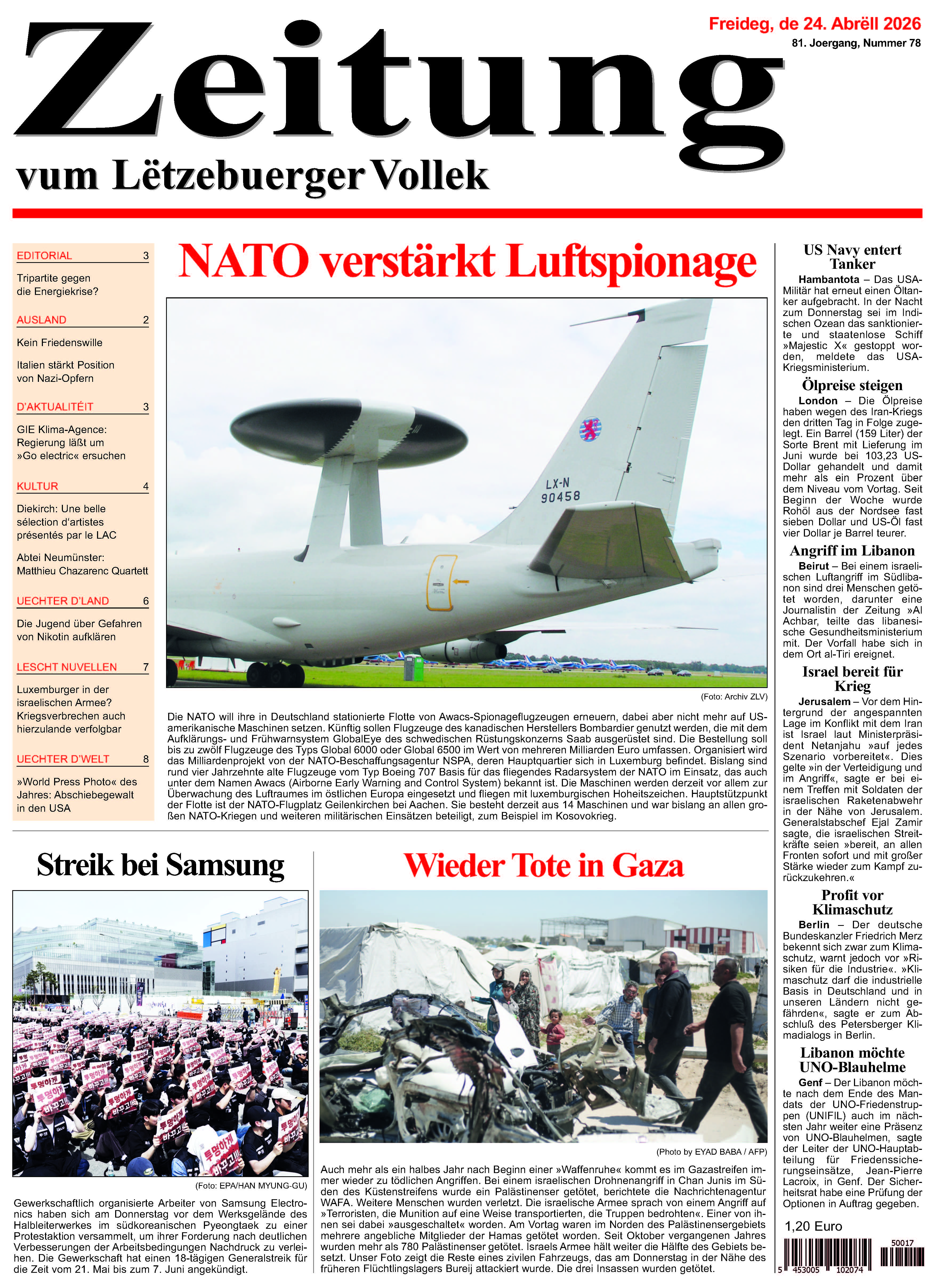 Dazu zählen die Wartungs- und Beschaffungsagentur der NATO in Capellen und das USA-Militärlager in Sanem, die bisher für alle Angriffskriege und militärischen Abenteuer der USA und der NATO Militärmaterial lieferten. Dazu zählt auch die Erneuerung der AWACS-Flotte, die unter dem Luxemburger Hoheitszeichen in der ganzen Welt spioniert. Bedeutend mehr Gelder sollen zudem für die Militarisierung des Weltraums und den Cyberkrieg zur Verfügung zu stellen.