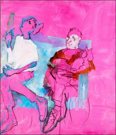 Fréquemment présent à la galerie Clairefontaine (1), il y a déjà participé à de nombreuses expositions collectives et en a présenté aussi bien des individuelles. Souvenez-vous notamment de son expo « Les sept péchés capitaux », joyeuse série d’allégories, que je vous ai dévoilée il y a deux ans dans ces colonnes ! Cependant, aujourd’ hui, son pinceau ne signale ni stigmatise aucun nouveau péché capital. Roland Schauls aurait-il mis un peu la pédale douce sur la corrosion ? Possible, mais il n’en a pas oublié pour autant la dérision... enfin, sans trop la pousser quand même. Ce qui ne l’empêche d’ailleurs pas de flirter avec son petit côté Toulouse-Lautrec revu à l’expressionnisme allemand et saupoudré d’un Bacon qui aurait remplacé le grotesque par l’élégance... en supposant que ça ait pu exister.