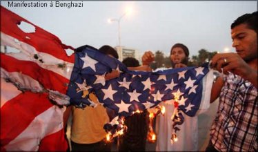 Une exception dans ce paysage médiatique aux colonnes d’une superficialité consternante nous est toutefois offerte par un long article bien détaillé de Youcef Benzatat dans Mediapart : « Innocence of Muslims » : une fuite en avant de plus pour un Empire décadent. (1) Si l’on fait abstraction du nombre, parfois dérangeant, de coquilles, on pourra se faire vraiment plaisir et mourir nettement moins bête en lisant ce texte d’une rare lucidité ! Dommage seulement que Youcef Benzatat ne tire pas les conclusions de sa sagacité. Il ne fait en fait qu’égratigner “en passant” les possibles promoteurs de cette sale combine et tombe ainsi, au moins en partie, dans le piège de la provocation. Il risque donc, sans la commettre tout à fait, la même erreur que les foules hystériques qui s’en prennent aux U.S.A. en bloc et à ses représentants les plus visibles, mais, du moins cette fois, non coupables et complètement dépassés par la situation. Cherchez donc plutôt à qui le crime profite ! Et ce n’est certes pas à Barak Obama, Hillary Clinton, à leur ambassadeur ou aux intérêts du peuple américain dans son ensemble.