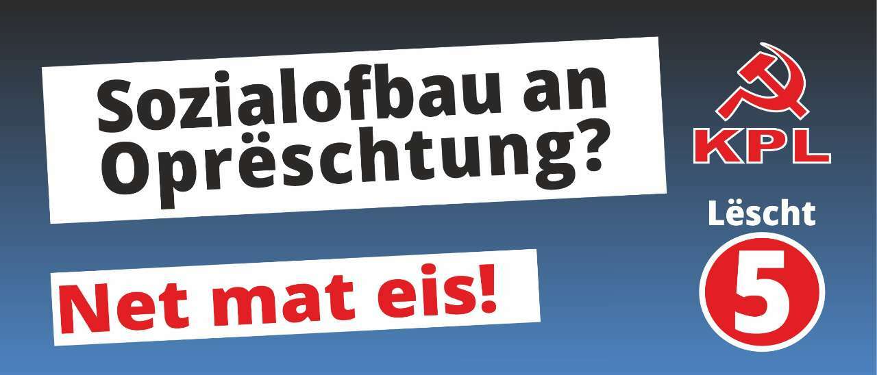 Das gleiche gilt, wenn es um eine Erhöhung des Mindestlohnes und der Mindestrente, bessere soziale Dienstleistungen, größere Bildungschancen, mehr Gesundheitsfürsorge, Arbeitszeitverkürzung sowie Maßnahmen gegen die Armut, die Arbeitslosigkeit und für den Bau von genügend bezahlbaren Mietwohnungen geht – alles Forderungen, die auch im Programm der KPL zu den EU-Wahlen zu finden sind.