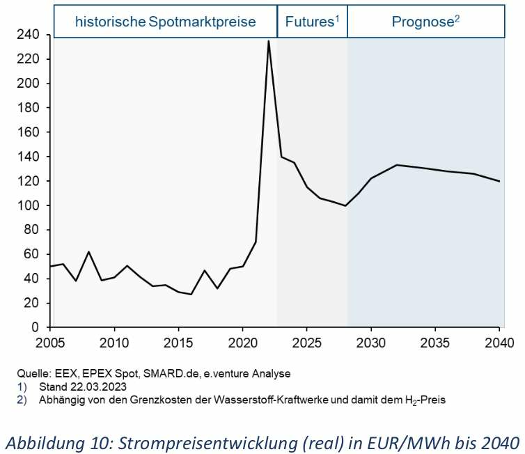 Die Studie schlägt nicht vor, den Strom zurückzugewinnen über Brennstoffzellen, sondern schlägt vor, das mit Verbrennung des Wasserstoffs in Gaskraftwerken zu tun. Das sei schneller aufzubauen, zumal angenommen wird, die noch nicht 10 Jahre alten Gaskraftwerke von Erdgas- auf Wasserstoffverbrennung günstig umrüsten zu können. Allerdings wird das nicht ausreichen, es braucht auch neue. Wobei uns auffällt, daß die Frage der Taktgeber, an der sich die anderen Einspeiser orientieren können und müssen, völlig unter den Tisch fällt. Mit ständig als Grundlasterzeuger laufenden Brennstoffzellen wäre das organisierbar, aber das setzt zusätzliche Investitionskosten und entsprechend größere Wasserstoffmengen voraus.