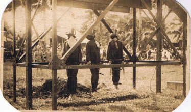 Ungesühnte Kolonialverbrechen der USA : John J. Pershing ließ auf den Philippinen Massaker an der Zivilbevölkerung begehen (erhängte Moro-Kämpfer, 23.7.1911)