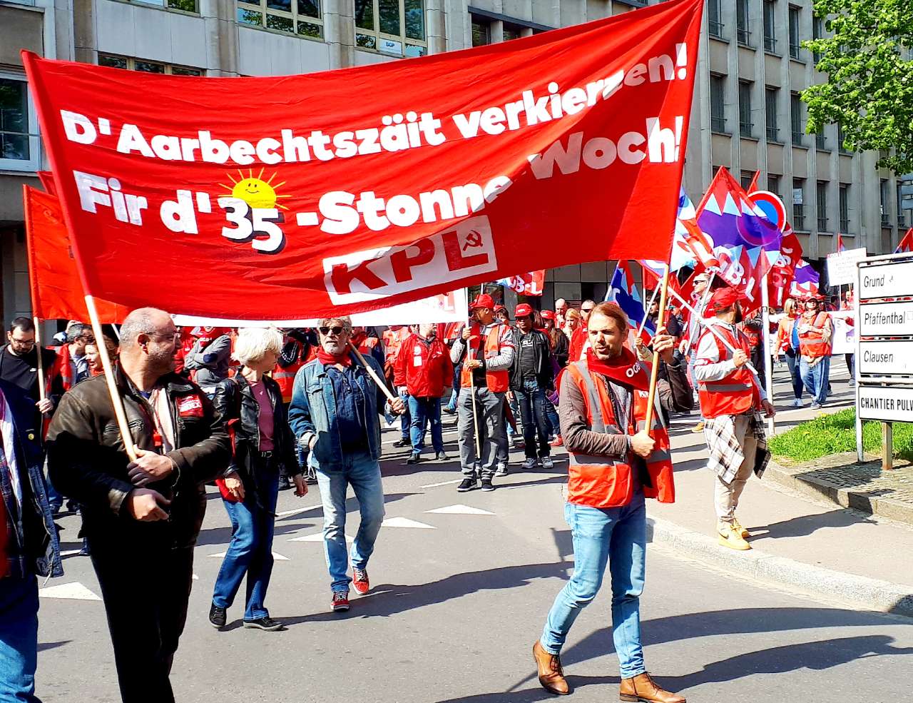 Die KPL fordert zum Beispiel die 35-Stunden-Woche ohne Lohnverlust, der OGBL erinnerte während seiner rezenten Kampagne »Grad elo!« an seine Forderung nach einer sechsten Urlaubswoche und daran, dass die wöchentliche Zahl der Arbeitsstunden gesenkt werden muss.