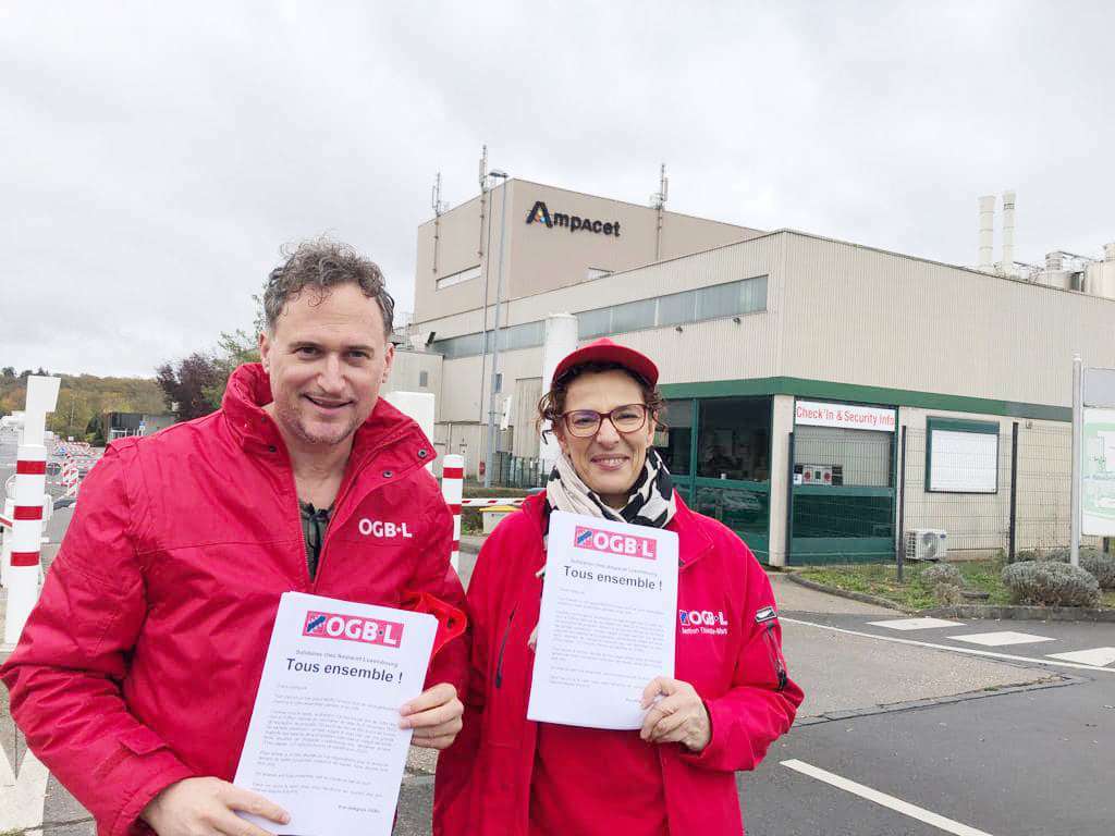 Im Rahmen der Kollektivvertragsverhandlungen beim US-amerikanischen Kunststoff- und Farbenhersteller Ampacet in der Industriezone »Wolser« bei Düdelingen, hatte der OGBL, nach Rücksprache mit den Beschäftigten und Personalvertretern, eine Lohnerhöhung von 2,5 Prozent und drei zusätzliche Urlaubstage gefordert.
