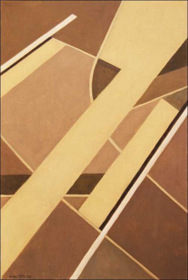 L’art abstrait géométrique en général et celui de Roger Greisch en particulier s’organise en polyèdres, plans, lignes droites et courbes sans lien quelconque avec la réalité apparente. Mais lorsqu’un Piet Mondrian rechercha avant tout l’esthétique rectangulaire pure et inspirera de nombreux décorateurs(2), l’abstraction de Greisch représente, elle, le non représentable, l’intuitivement percevable. Le dépouillement de son style, c’est-à-dire l’économie des formes, ainsi que la sobriété des teintes et leur discrète mais étroite interaction, lui permet de faire passer un message d’une profonde spiritualité. La peinture figurative pratiquée à ses débuts ne lui en eût-elle pas fourni les moyens ? Probablement pas, car trop exigeant pour accepter que ses modèles ne communiquent avec le spectateur que par leur apparence, il préféra couper le cordon ombilical avec le monde sensible et se tourner vers le symbole dans sa recherche d’absolu. Cette quête a-t-elle été fructueuse ? La réponse est dans ses tableaux. À vous, amis lecteurs, d’aller voir ce qu’ils ont à vous dire !