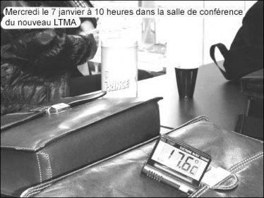 Mais maintenant, une semaine avant l’inauguration officielle de notre lycée, le vase déborde, car la situation est toujours intenable. Avec les températures extérieures qui chutent, nous devons enseigner et séjourner dans des salles froides. Dans plus de 30 salles de classe (1/3 du nombre total), les radiateurs ne réussissent pas à dégager suffisamment de chaleur, de sorte que mercredi et jeudi passés, la direction a dû renvoyer une vingtaine de classes, parce que les températures étaient trop basses dans les salles (inférieures à 18°C). Les grandes salles de réunion n’atteignent une température normale que si la température extérieure ne tombe pas au-dessous de 0°C. Les radiateurs installés se révèlent maintenant trop petits pour garantir une température suffisante, de sorte que les personnes responsables prévoient d’en installer de plus grands. Dans les salles d’ateliers trop froides aussi, les radiateurs ont été installés au plafond, alors que les élèves apprennent dans le cours de physique que l’air chaud monte et ne descend pas. Une fausse alerte au feu a fait que des fenêtres ne se laissent plus fermer dans la salle de gymnastique, de sorte que le froid y règne.