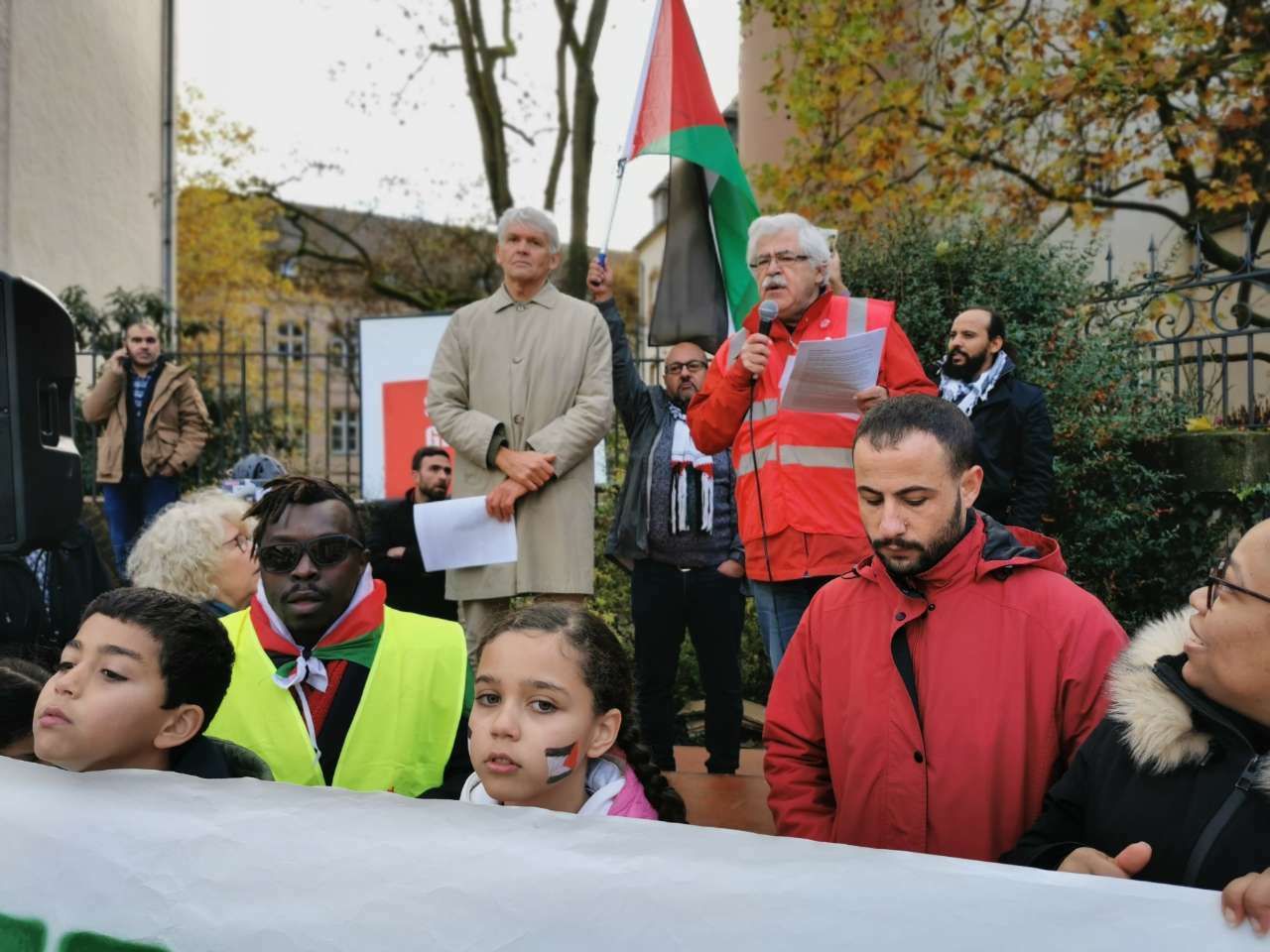 Während der Abschlusskundgebung auf dem Clairefontaine-Platz ergriffen unter anderem Claude Gregoire (CPJPO), Ali Ruckert (KPL), David Wagner (déi Lénk), Michel Legrand (CPJPO), Jean-Luc Karleskind, Armand Clesse und Hassan al Balawi, Erster Berater der Botschaft Palästinas für Belgien und Luxemburg, das Wort.