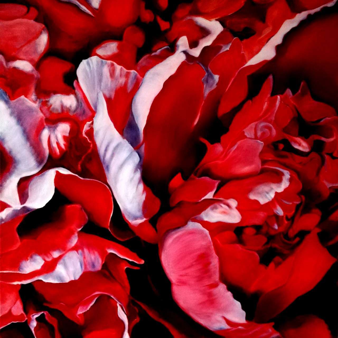Yolande Benats présente une plongée au cœur des fleurs. Peintes comme une nature morte, souvent en pleine floraison, au sommet de leur beauté charnelle, elles sont le symbole de l’éphémère, du désir, du cycle de la vie. Des coups de pinceau gestuels, précis et amples, des déclinaisons de rouge ou de rose, des lavis légers ou des couches affirmées d’huile sur toile les révèlent dans leur énergie vibratoire, leur présence délicate et sensuelle.