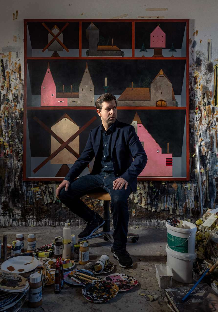 La peinture de Titus Schade a quelque chose de menaçant aussi. L’artiste convoque le théâtre, l’architecture, ainsi que les modèles miniatures.